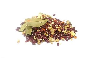 INGREDIENTES: feijão azuke, alho granulado, cebola desidratada , cenoura desidratada, louro em folhas , óleo de soja, pimentão vermelho, tomate em flocos, proteína de soja míuda , proteína de soja grauda, proteína de soja em tiras.